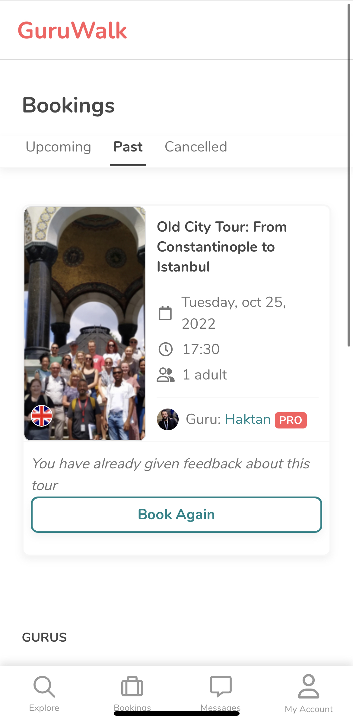 나는 도시에가면 숙소에 짐을 풀고 Guruwalk부터 켠다.